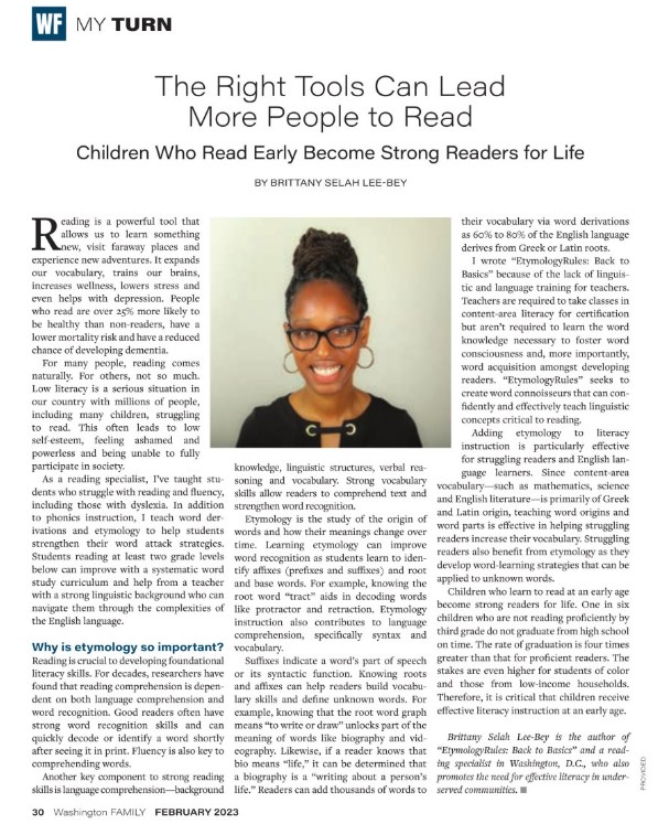 EtymologyRules is an educational program Brittany created to equip people worldwide with the knowledge and power of words, as word knowledge is key to developing strong communication skills. EtymologyRules’ first book, Back to Basics, is a workbook with content and exercises to strengthen the readers’ English orthography (the study of a language's writing system) and vocabulary. Readers of Back to Basics will gain knowledge to aptly analyze and interpret the written word.